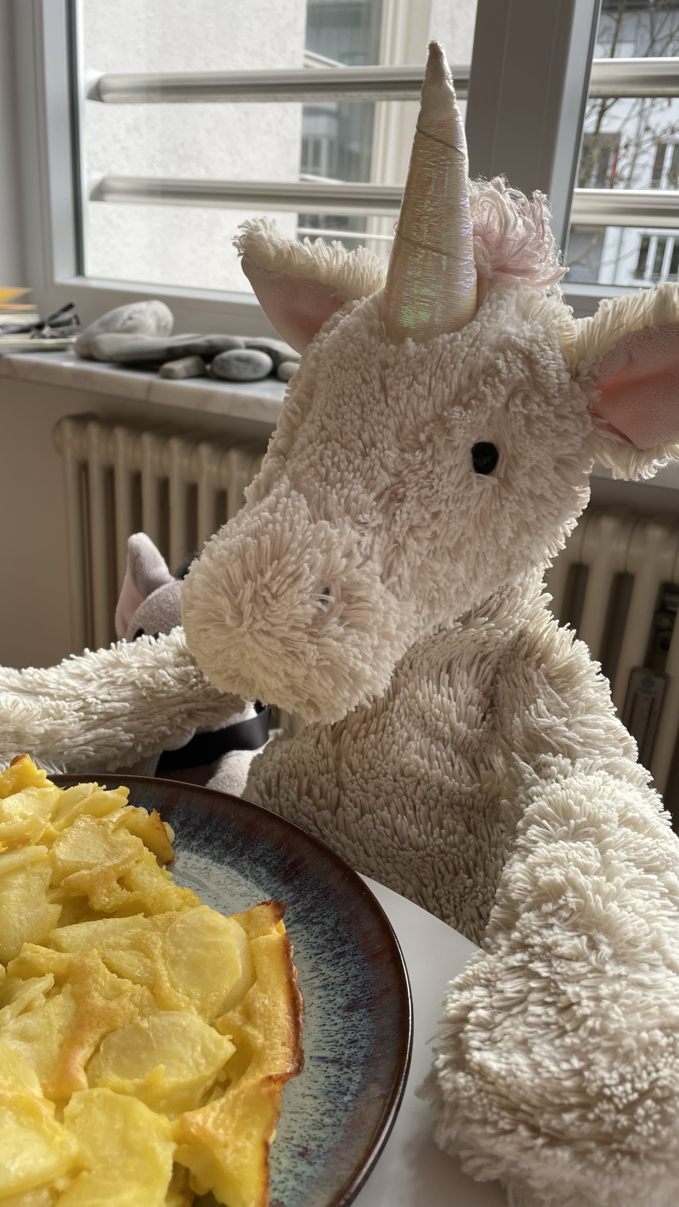 Nach meinem Longjog von München an den Starnberger See machten wir am Ufer ein Picknick. Plötzlich schwamm ein sehr stolzer und sehr großer Schwan weit draußen vom See direkt auf uns zu. Irgendwie glaubte der Schwan vielleicht sei unser Einhorn ein Schwanenbaby und müsste von ihm beschützt werden, aber so ganz sicher war er der Sache auch nicht. Auf jeden Fall rückte er sehr nah an uns ran, fauchte, aber lies uns trotzdem etwas eingeschüchtert sitzen, immer mit Blick auf das Einhorn.
