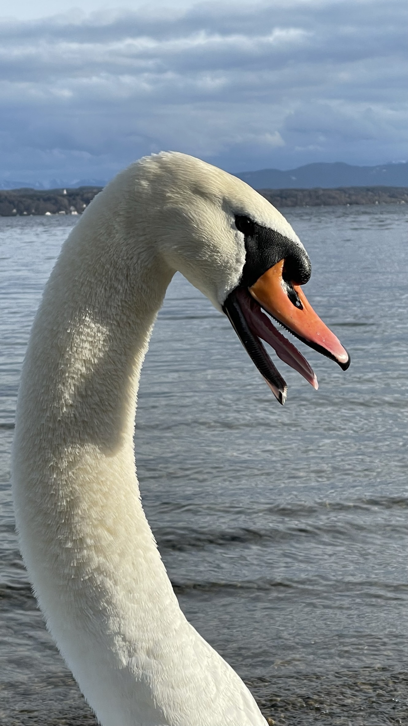 Meine Frau zum aufgeregten Schwan