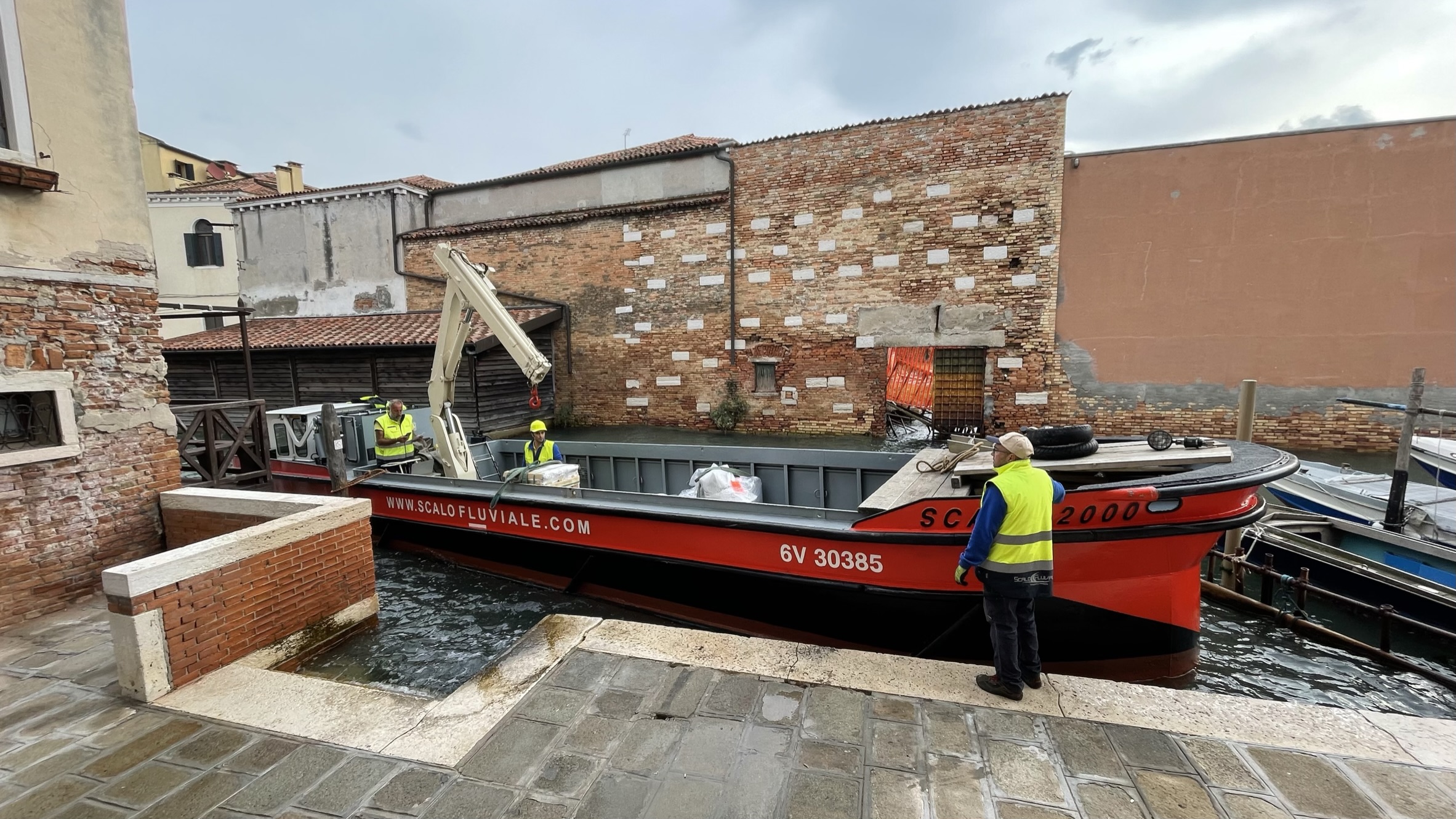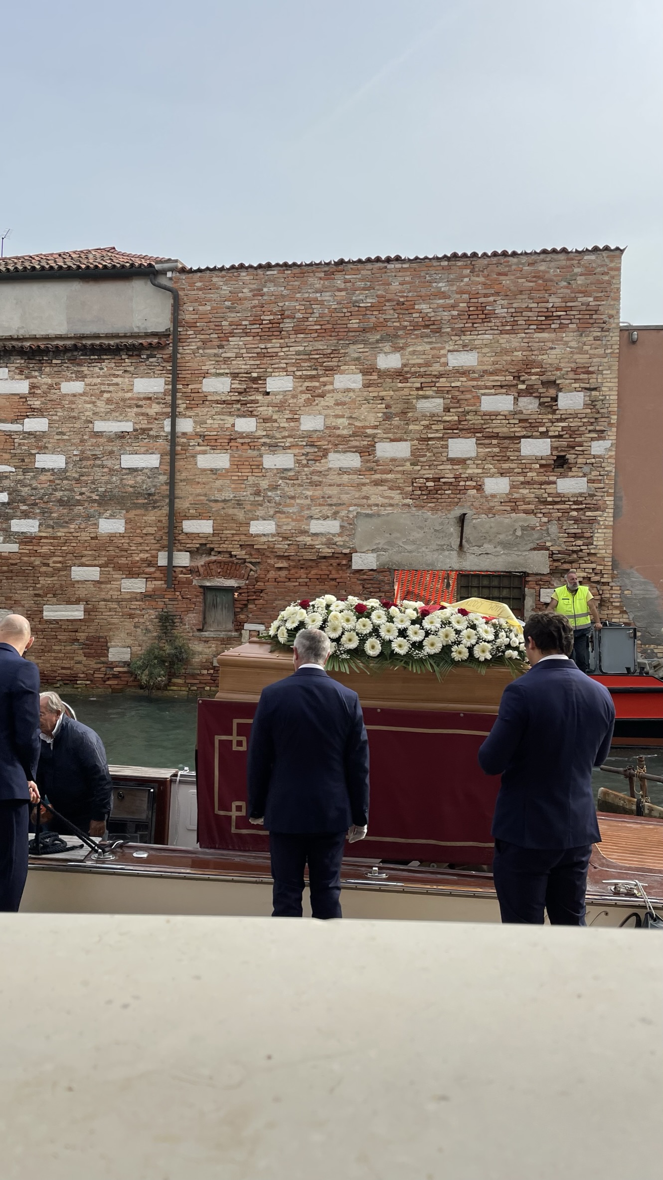 Morgens beim Frühstück im Airbnb auf Guidecca klopft es an die Scheibe. Direkt am Kanal vor unserem Fenster hat ein Lieferkahn angelegt und lädt erste Paletten vor unserer Haustür ab. Schnell ist klar, dass wir nicht der Empfänger sind, aber der richtige ist dann doch schnell im Nachbarhaus gefunden. Mittem beim Ausladen unterbrechen die Arbeiter ihre Arbeit und setzen den Kahn an die gegenüberliegende Kanalseite. Kurz darauf legt ein Begräbnisschiff an und ein Sarg wird mit etwas Mühe wegen einer streikenden Hydraulik ausgeladen und zum Gottesdienst in der Kirche Il Redentore gebracht. Die Hydraulik wird unter etwas Fluchen notdürftig mit viel Hammereinsatz repariert und der Sarg nach einiger Zeit wieder abgeholt und weitertransportiert. Anschließend wird der Frachtkahn weiter entladen und unser Frühstücksabenteuer ist dann auch zu Ende.