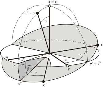 Auf den ersten Blick ist alles einfach, die Orientierung eines starren Körpers im uns umgebenden Raum wird in den meisten Fällen mit Eulerschen Winkeln dargestellt. Mit Hilfe von drei Eulerschen Winkeln kann man alle möglichen Orientierungen eines starren Körpers im Raum darstellen. Aber die Probleme fangen an, wenn man die Eulerschen Winkel tatsächlich verwenden will: Vergleicht man die eigenen Formeln mit den Ergebnissen von anderen, dann passt meist Nichts zusammen.